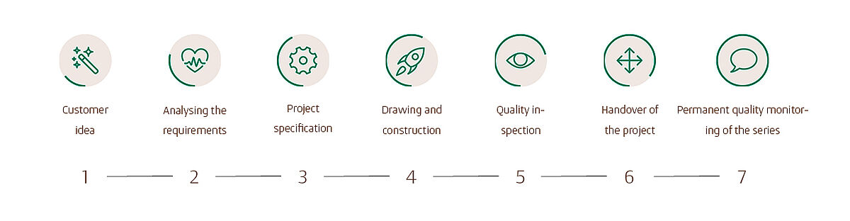 - Your draft, our implementation | You provide the idea – we take care of design, quality control, and series production